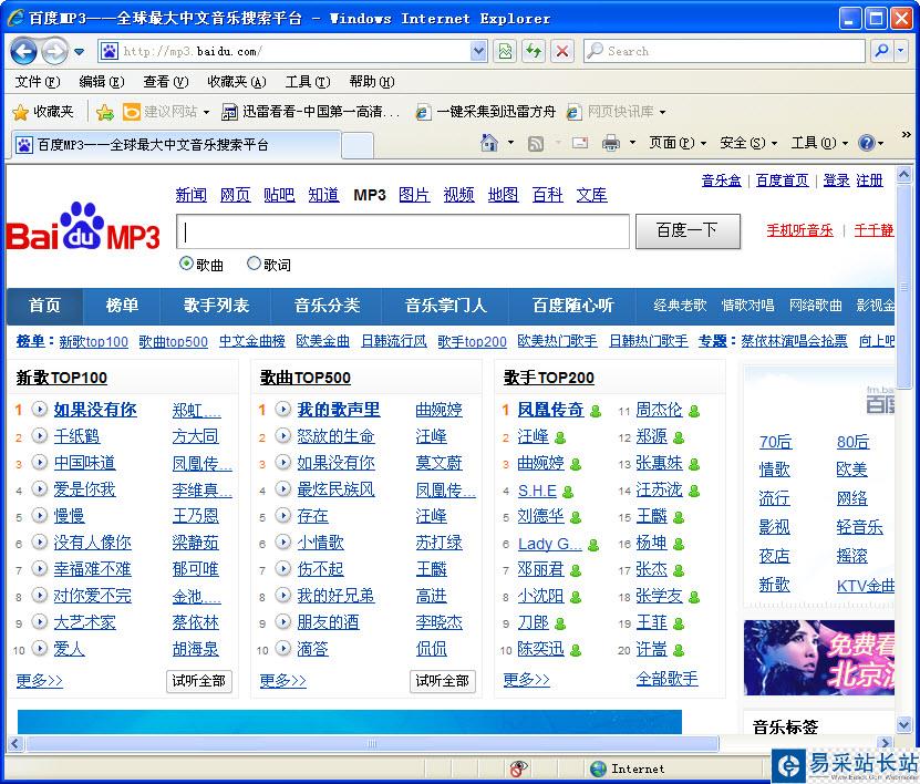 第二步:使用ie6、ie7、ie8、ie9瀏覽器,打開(kāi)http://mp3.baidu.com/