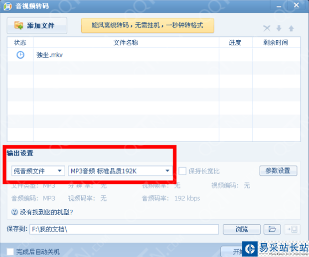 5、使用播放器自帶的轉碼工具轉換成MP3格式。
