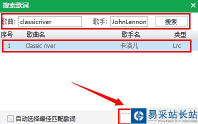 輸入歌曲跟歌手進行搜索,然后就會跳出相對應的歌詞,點擊確定。