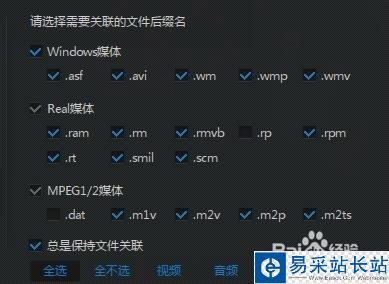 4、根據需要選擇要關聯的文件類型,也可點擊全選,選好后點擊確定