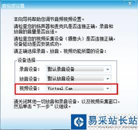 2) 在音視頻窗口中的視頻設備中選擇“Virtual Cam”,即可實現在聊天室關聯MVBOX虛擬攝像頭,可以很方便的利用畫中畫、調色板、濾鏡和摳象、特效等功能來美化您的攝象頭,如下圖設置所示: