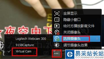 在QQ視頻窗口點擊按鈕,在功能列表中點擊“選擇攝像頭功能”,選擇“Virtual Cam”,即可實現在QQ視頻的時候,使用MVBOX虛擬攝像頭功能,可以很方便的利用畫中畫、調色板、濾鏡和摳象、特效等功能來美化您的攝象頭,如下圖設置所示: