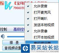 1) 進入聊天室,在聊天室的右側點擊按鈕,選擇音視頻設置,如下圖:
