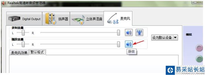 設置完成后如果是筆記本是自帶麥克風的,這時朝麥克風吹氣,如果發現揚聲器中發出聲音則打開Realtek的管理器(控制面板——硬件和聲音下或系統托盤,在麥克風標簽中的播放音量后選擇靜音,如果不靜音的話,在錄制時會加入麥克風收到的外界聲音)