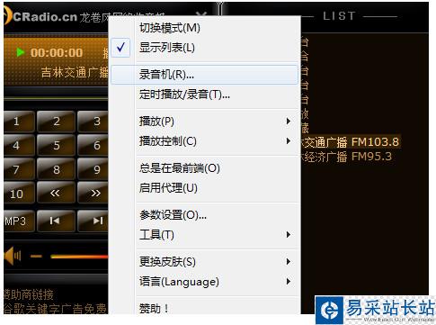 第四步:打開龍卷風網絡收音機,右擊主窗口,在彈出的菜單中選擇“錄音機”進入“錄音機設置”