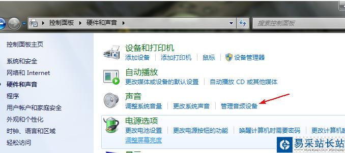 第二步:確定自己啟用了聲卡來錄音,進入控制面板——硬件和聲音——聲音——管理音頻設備