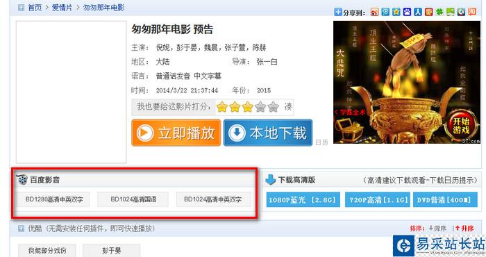 選擇帶有百度影音播放功能的網站,選擇清晰度即可