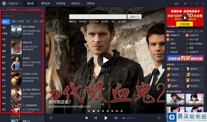 1、如果是想搜綜藝、電視劇、熱播電影,在百度影音的左邊菜單欄輸入名稱即可
