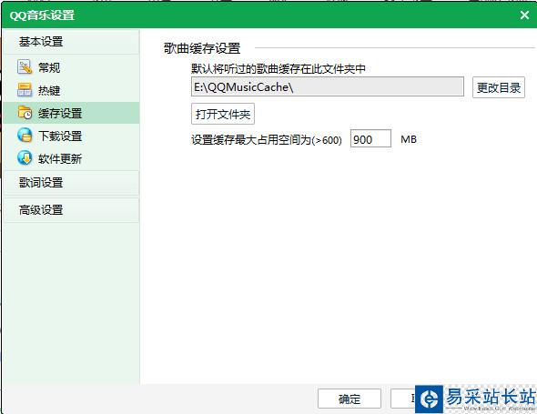 2、在彈出的對話框中選擇“緩存設置”,點擊“打開文件夾”設置