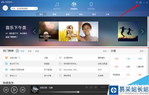 1、打開電腦版的百度音樂播放器,點擊右上角一個齒輪狀的圖標,即“設置”圖標。