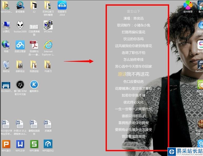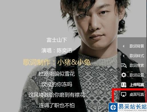3、接著點擊右邊的“桌面寫真”這一項,就可以看到歌詞在桌面播放了