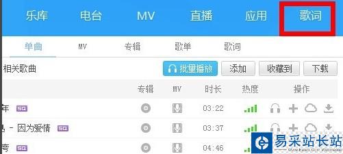 2、之后選擇“歌詞”這一項