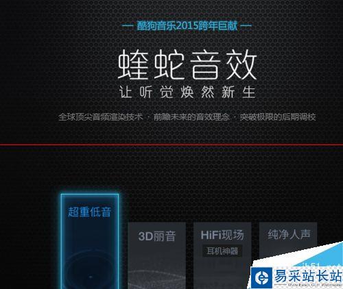 1、蝰蛇音效,就是將我們聽到的歌曲經過后期調校,然后以精湛的音樂渲染技術還原出歌曲的魅力。目前,酷狗音樂蝰蛇音效有超重低音、3D麗音、HIFI現場和純凈人聲這四種