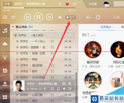2、更新成功酷狗音樂后,我們點擊打開酷狗音樂,然后點擊音量設置上的音效,如圖所示