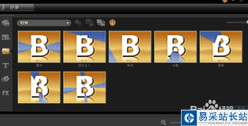 2、點擊轉場按鈕---收藏夾---時鐘,然后選擇第一個時鐘效果