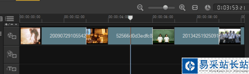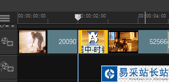 3、用鼠標拖動該時鐘效果到視頻軌的圖片之間就實現了圖片和圖片之間的切換。