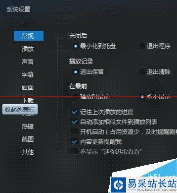 3、缺省進入的是熱鍵下的播放熱鍵設(shè)置,可以看一下哪些鍵位已經(jīng)被使用,鼠標選擇其它菜單