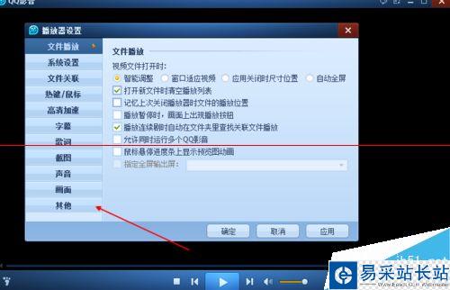 2、然后我們在空白處右鍵的,出現大量的對話框,我們找到下邊的播放器設置