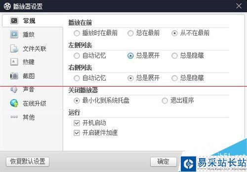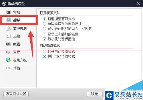 1.3在“播放器設置面板”找到“播放”設置選項卡,如圖