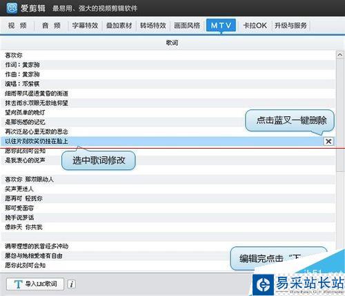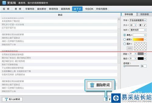如果之前操作有誤,那在“MTV”面板的歌詞列表下方,點(diǎn)擊“刪除歌詞”按鈕即可。