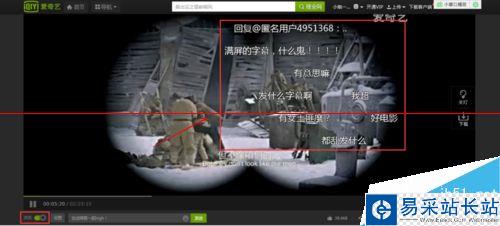 3、點擊彈幕右側的開關按鈕可以開啟彈幕功能,此時視頻播放界面會出現很多網友互動文字及圖片,如下圖所示。