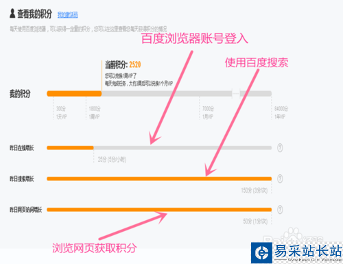 積分獲取:1,使用百度瀏覽器。2,使用百度搜索。3,但進入其他網頁也能獲取積分哦(注意:要是你用瀏覽器不登賬號,不僅不會給你積分,積分還會一天天消失的)