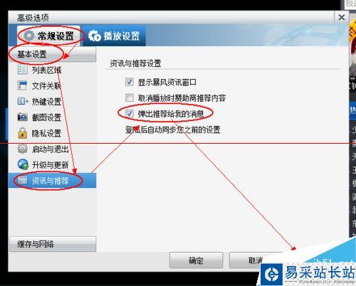 3、在【高級選項】界面下,點擊選擇【常規(guī)設(shè)置】--【基本設(shè)置】--【資訊與推薦】--點擊去掉【彈出推薦給我的消息】選項左側(cè)小方框里的勾--【應(yīng)用】選項完成設(shè)置。(如圖所示)