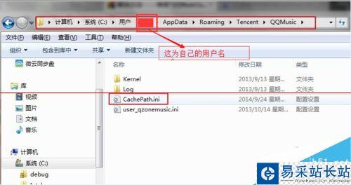 5、發現沒有CachePath.ini文件的很好辦,正在C:/Users/XXXX/AppData/Roaming/Tencent/QQMusic下創建一個文本文檔,更名為CachePath.ini(這里要注意文件的文件可擴展名*.ini),打開輸入以下內容保存即可。