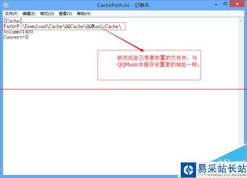 2、Path=F:/Download/Cache/QQCache/QQMusicCache/中Path=后面的為自己想放置的文件夾位置。