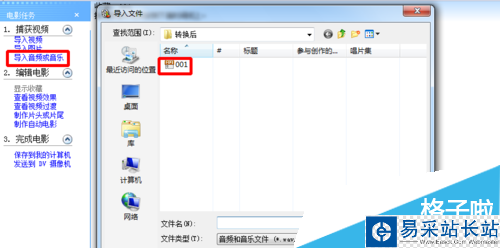 3、單擊文件---打開(kāi),找到提取出來(lái)的音頻文件001,打開(kāi)。