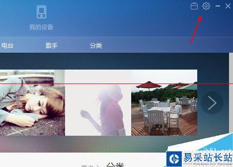2、來到百度音樂的主頁面上來,在右側上邊找到一個小齒輪的圖標,這是系統設置的選項