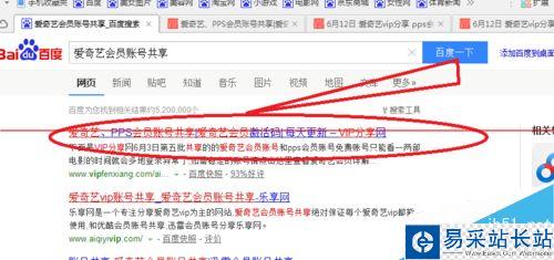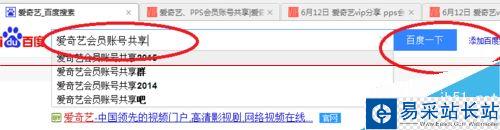 2、在百度輸入愛奇藝會(huì)員賬號(hào)共享,按回車鍵