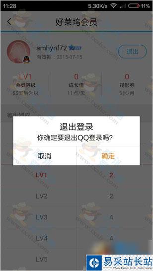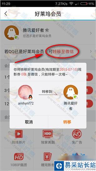 2、退出登錄的QQ,用微信登錄(小編測試是拿沒開通好萊塢會員的微信號);登錄微信號后可以看到 好萊塢會員可以轉移到微信號。