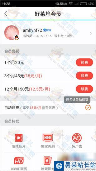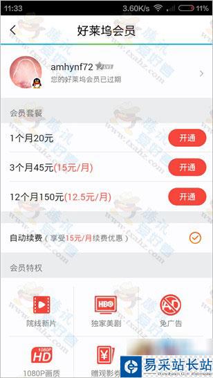 3、確定轉移后,微信登錄的號變成好萊塢會員,之前的QQ號好萊塢會員已經沒有了