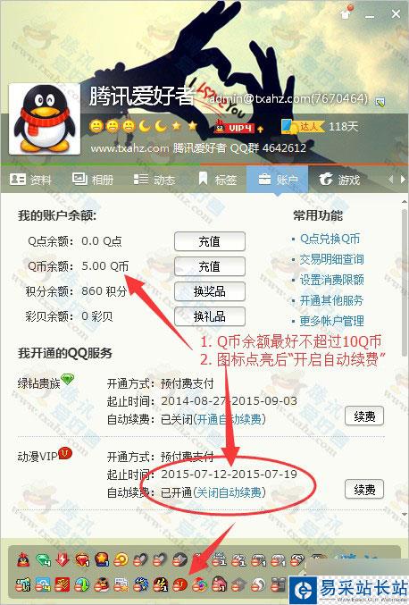3、這樣便可點(diǎn)亮圖標(biāo)了,點(diǎn)亮成功后“開啟自動續(xù)費(fèi)”,再“隱藏圖標(biāo)”坐等過期,就這么簡單【開啟自動續(xù)費(fèi)Q幣的余額不要超過10Q幣,不然真的續(xù)費(fèi)了你還以為卡住的~】