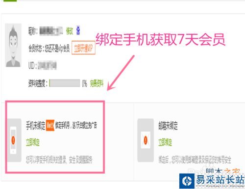 2、點擊你百度名-在點擊個人首頁-點擊設置;進入個人設置,綁定手機,獲取7天會員。