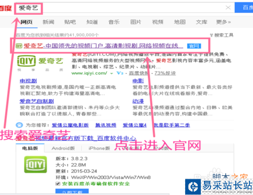 1、百度搜索愛奇藝-進入官網。