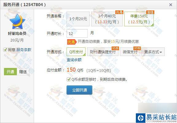 1、150Q幣開通12個月好萊塢會員返還12Q幣,開N次送N次