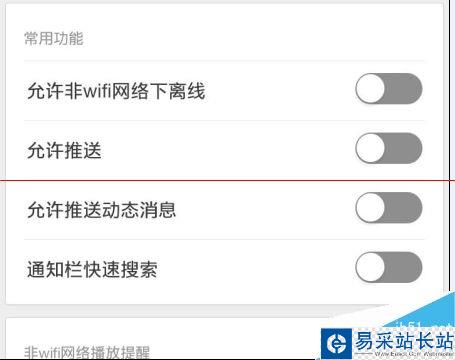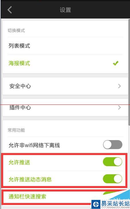 4、在設(shè)置中我們可以看到【允許推送】、【通知欄快速搜索】,將它關(guān)閉就可以了。