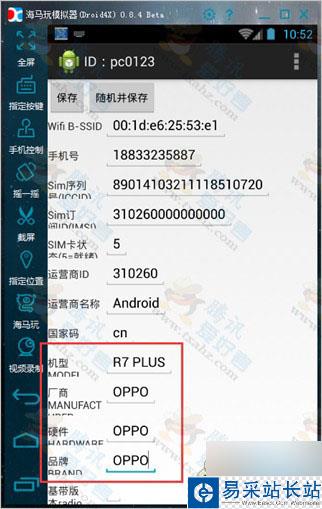 1、模擬器里先下載好騰訊視頻,然后打開pc0123設置機器為86756702932XXXX(后面4位可以任意改動) ,機型為 R7 PLUS ,廠商、硬件、品牌三個都設置 OPPO 。如下圖: