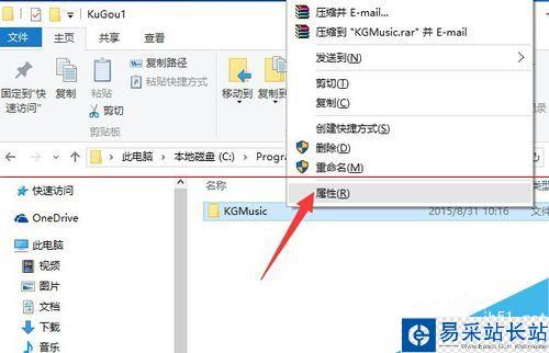 7、待安裝酷狗音樂完成后,進入其安裝目錄,右擊“kugou”文件夾,選擇“屬性”項。
