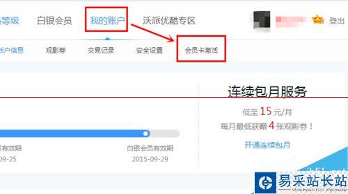 4、在”我的賬戶“下方導航上選擇”會員卡激活“