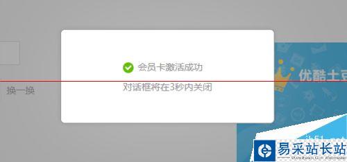6、優酷7天會員卡號正確的話會提示激活成功。