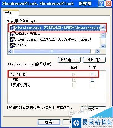 11、在“組或用戶名稱”框中選擇當前登錄的用戶,賦予該用戶“完全控制”的權限