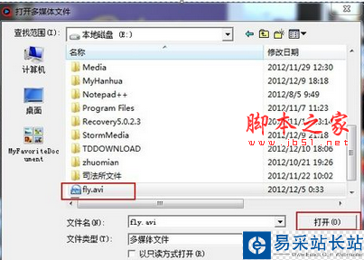 3、有時候我們需要打開本地的視頻來觀看,其操作方法是:點擊窗口右上角的“下拉按鈕”,從彈出的菜單中選擇“播放本地文件”,從彈出的“打開”對話框中選擇本地視頻文件,點擊打開按鈕即可播放。