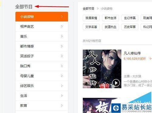5、選擇之后,就會顯示該分類下的詳細節目列表