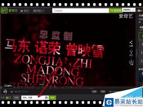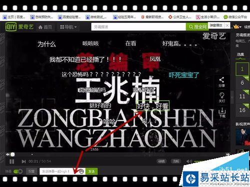 4、打開彈幕之后,我們需要學會如何發送彈幕,點擊彈幕按鍵旁邊的一個長方形對話框,輸入你想說的話,點擊發送,之后,就能夠在視頻上面看到你的彈幕了。