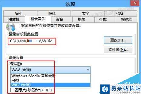 4、切換到“翻錄音樂”標簽,從選擇要轉換的格式,“確定”返回: