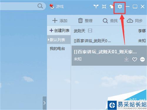 2、點開酷我音樂以后,注意到右上角有一個齒輪狀的按鈕,點擊此按鈕。