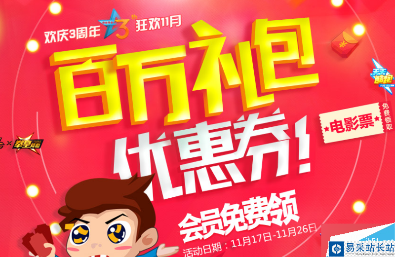 好萊塢會員3周年百萬禮包優惠券免費領活動 年費會員百分百領取。好萊塢正價會員的還可以領取qq圖書vip,每天10點開始領取,限量發行,有是好萊塢正價會員的可以參與下這個qq活動。